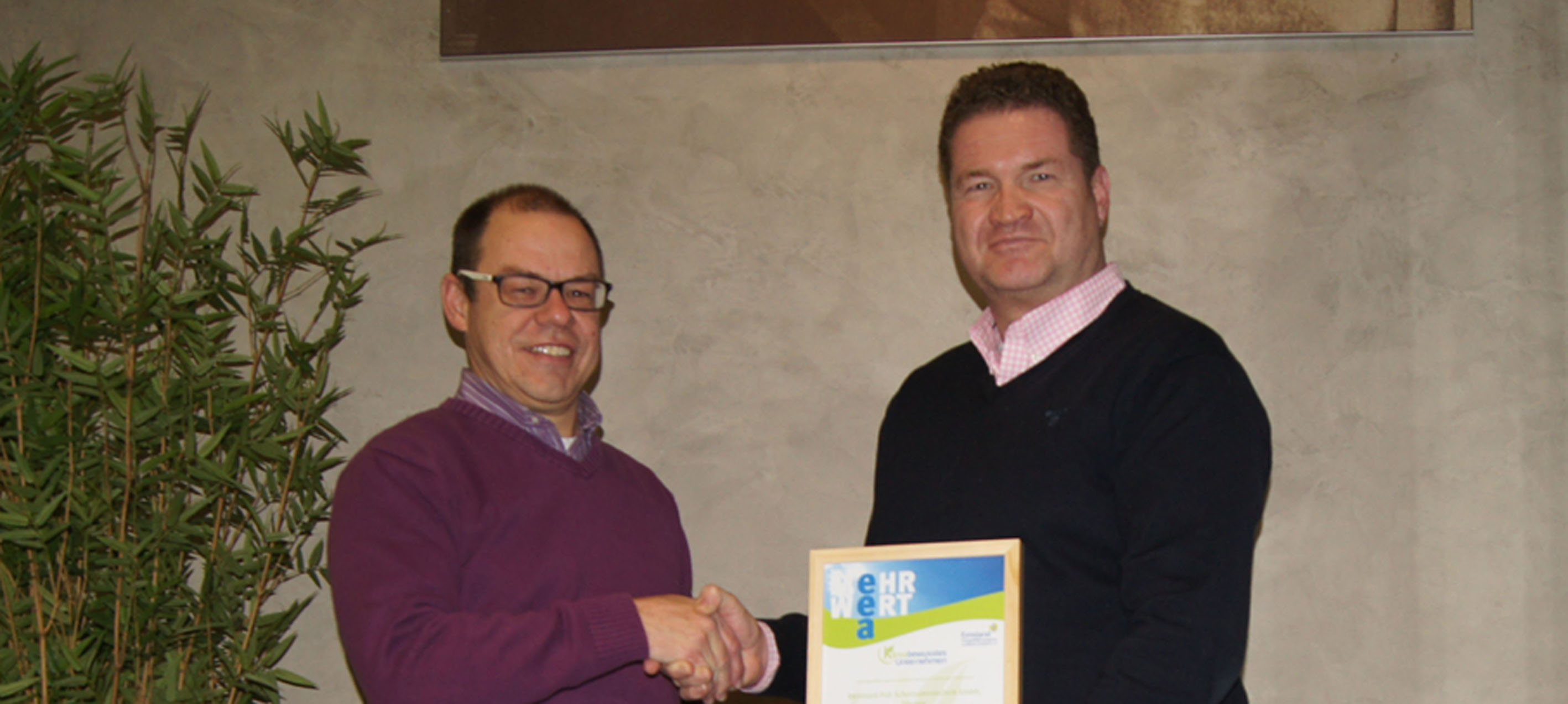 Zum zweiten Mal wurde das Unternehmen nun mit dem drei Jahre gültigen Zertifikat ausgezeichnet. Die Maßnahmen, welche beim ersten Mal in die Beurteilung einflossen hätten sich laut Poll bereits amortisiert. Ansporn genug weitere Projekte anzustoßen. Mit Erfolg. So flossen in die aktuelle Auszeichnungsbewertung der Bau einer Photovoltaikanlage auf einem Hallendach und die Anschaffung eines Elektro-Smarts als Dienstwagen samt Aufladestation mit ein. „Wir tanken unser Elektrofahrzeug mit selbst erzeugter Energie“, ergänzt Prokurist Thomas Kuhr. Dies sei ein weiterer Baustein in Richtung nachhaltiges Energiemanagement. „Mit Hilfe des Gütesiegels wollen wir nicht nur bei Unternehmern sondern auch bei den Mitarbeitern das Bewusstsein für ein umweltbewusstes, energieeffizientes Handeln schärfen“, so Gravel. Bei einem Klimaschutzaktionstag seien die Mitarbeiter von POLL in Sachen klimabewusstes und energieeffizientes Handel aufgeklärt worden. Zusätzlich hatten die Mitarbeiter die Gelegenheit durch Testfahrten mit Elektrofahrzeugen sich ein eigenes Bild in Sachen E-Mobilität zu verschaffen. Mittlerweile sind mehr als 20 Unternehmen aus dem Emsland mit dem Gütesiegel „Klimabewusstes Unternehmen!“ ausgezeichnet worden. „Aufgrund der Nachfrage nach dem Gütesiegel sehen wir, das Klimabewusstsein und der effiziente Umgang mit Energie einen immer höheren Stellenwert in den Unternehmen besitzt“, so Gravel.